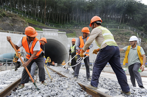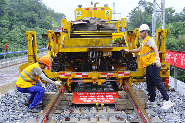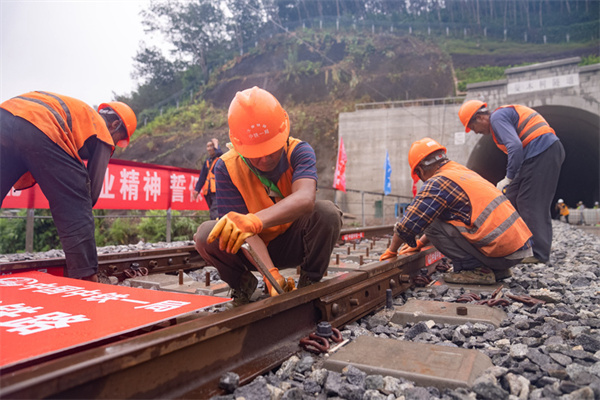 面对铺轨作业标准高、工期紧、交叉作业面多、24‰长大坡道给铺轨施工带来的巨大挑战,国铁集团统筹参建各方不断优化方案和资源配置,创新施工工艺,改造机械设备,采用机械化、自动化铺轨机组和施工信息化等手段,大幅提高了轨道精度和施工效益。