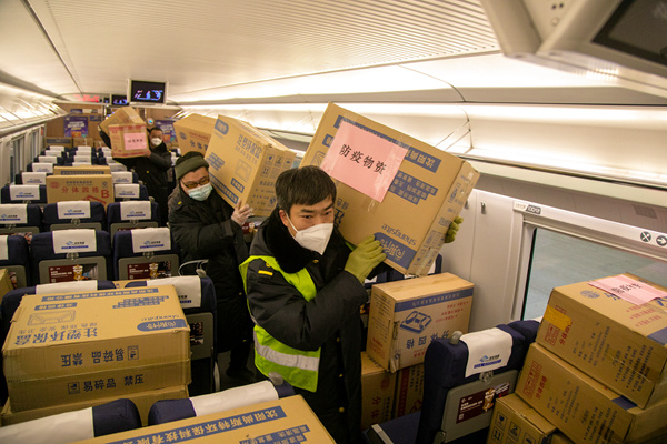 沈阳局组织人员装卸防疫和民生物资。国铁集团供图