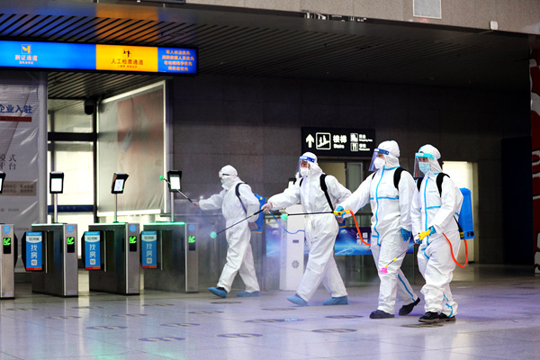 沈阳局对各车站进行消杀。国铁集团供图