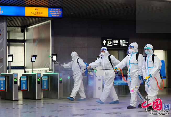 沈阳局集团公司对各车站进行消杀。王英建摄