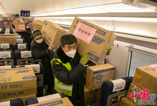 当得知大连派往长春的援助医疗队物资紧缺后,沈阳局集团公司4月7日,紧急组织开行防疫专列,将767件5369公斤物资火速运往长春。